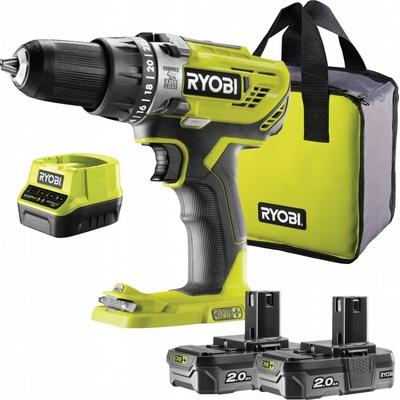 Ryobi R18PD3-220S ONE+ aku příklepový vrtací šroubovák 2x2.0Ah Aku příklepový vrtací šroubovák pro šroubování a vrtání otvorů do dřeva, kovu, plastu nebo zdiva. bezuhlíková technologie zajišťuje lepší výkon a delší výdrž motoru 24 stupňů nastavení točivého momentu...