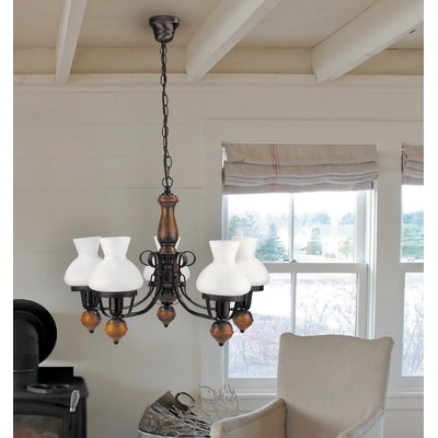 - klasický styl - příkon žárovky: 60 W - počet světelných zdrojů: 5 xE27 - žárovky je třeba zakoupit samostatně - barva lampy: matná černá - materiál lampy: kov/dřevo - barva stínidla: opálové sklo - materiál stínidla: sklo - šířka: 64 cm - výška: 100 cm- průměr: 64 cm...