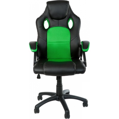 Otočné kancelářské křeslo Racing design zelené / černé Vysoce kvalitní syntetická kůže Otočná kancelářská židle Atraktivní sportovní racing design V opěradle intergrovaná opěrka hlavy Stabilní zakřivené područky s měkkými polštářky pro podporu Mechanismus plynulého...
