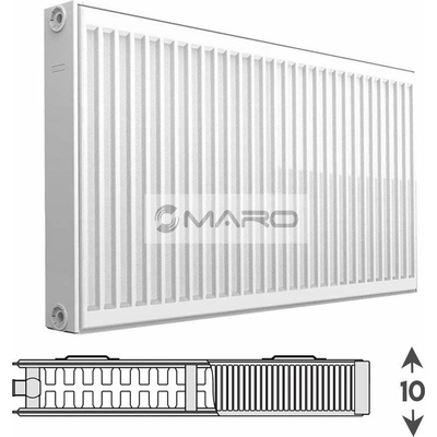 Deskový radiátor AIRFEL typu 22 (s dvěma topnými deskami) se spodním oboustranným připojením (LEVÉ + PRAVÉ), hloubkou 100 mm, výškou 900 mm, délkou 600 mm a roztečí připojení 50...