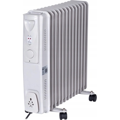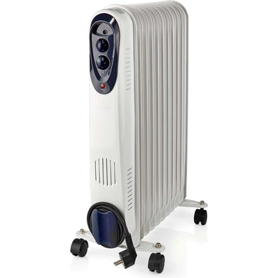 Výkonný elektrický olejový radiátor s 9 žebry, nastavitelným výkonem ve 3 stupních a termostatem pro řízení teploty v místnosti. Pomalu chladne a drží tak teplotu v místnosti déle.