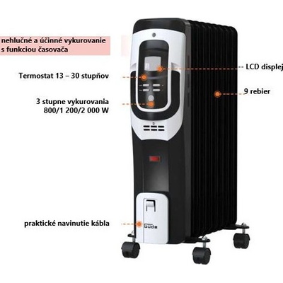 Radiátor olejový TEESA TSA8036, 2000 W Příjemné teploty doma během chladných podzimních dnů jsou jen vzpomínkou. Teplé chvilky doma vám zajistí 9-žebrový olejový radiátor...