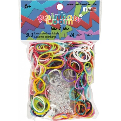 Gumičky Rainbow Loom® Original 600ks strakatý mix transparentní Obsahuje: - 600 ks gumiček příslušné barvy - 24 ks "C" klipů na spojování Základem je velice jednoduchý plastový...