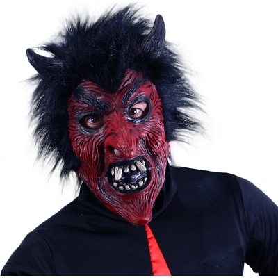 Senzační maska čerta je parádním doplňkem ke kostýmu. Latexová hrozivá maska je v červené barvě s černými vlasy. Vystraš své kamarády touto hrozivou maskou a zažij spoustu...