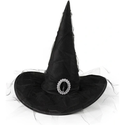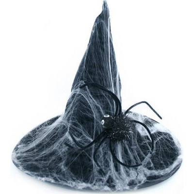 Úchvatný čarodějnický kousek je vysoký 38 cm. Sametový černý klobouk je zdoben pavučinami a nepřehlédnutelným plyšovým pavoukem. Klobouk je určen pro dospělé. Staňte se hvězdou...
