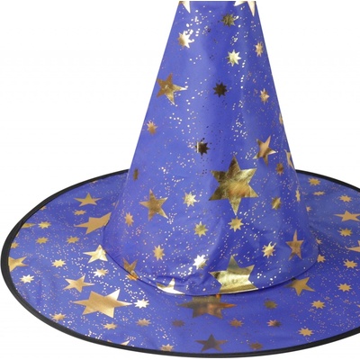 Úžasný špičatý čarodějnický klobouk v modré barvě s potiskem zlatých hvězdiček. Ideální i na halloweenský večírek nebo karneval! Karneval neboli masopust - v původním slova...