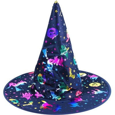 Čarodějnický dětský klobouk s magickými motivy - HALLOWEEN - 28 cm Čarodějnický klobouk s magickými motivy je skvělým doplňkem na Halloween párty nebo karneval! Klobouk je...