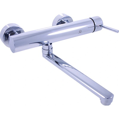 Páková nástěnná DŘEZOVÁ BATERIE V chromovém provedení. Rozteč baterie 150 mm.