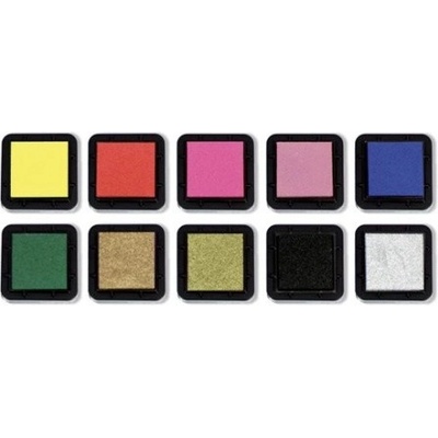 Sada 10 ks barevných polštářků pro razítka StampoKids a StampoScrap. Velikost polštářků je 3×3 cm.