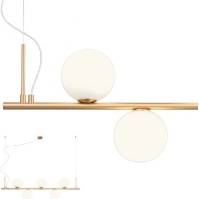 Specifikace:5 x max. 28W, E14Celková výška:120 cm Délka: 115 cm (viz obrázek) Materiál:kov, skloProvedení:bronzové s bílým stínidlemElegantní závěsné svítidlo TALIS 01-1635 od Redo Group.Kovová konstrukce je v bronzovém provedení s opalovým bílým stínidlem. Osvětlení...