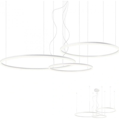 Specifikace:LED 66+55W+42W 12507lm 230VPrůměr:100+80+60 cm viz.obrázekBarva světla:3000KCelková výška:max. 200 cmMateriál, barva:kov , hliník - matná bílá barva, bílý akrylátFuturistické LED osvětlení Redo Group 01-1722 z kolekce ORBIT v bílé barvě.Kruhy drží na...