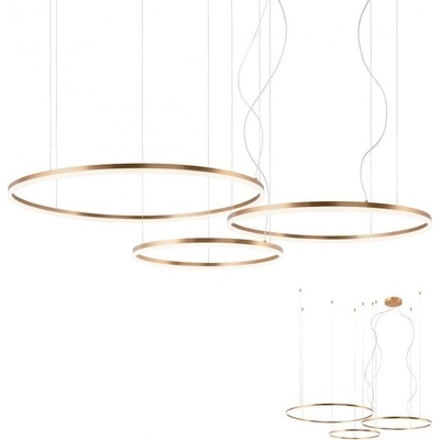 Specifikace:LED 66+55W+42W 12507lm 230VPrůměr:100+80+60 cm viz.obrázekBarva světla:3000KCelková výška:max. 200 cmMateriál, barva:kov , hliník - barva bronz, bílý akrylátFuturistické LED osvětlení Redo Group 01-1723 z kolekce ORBIT v bronzové barvě.Kruhy drží na...