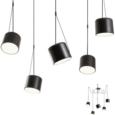 - závěsné interiérové LED svítidlo ze série DODO od REDO group, konstrukce a 5x difuzor z kovu lakované v matné bílé nebo černé barvě, reflektory z akrylátového průhledného skla - dodáváno s 3 metry bílého nebo černého textilního kabelu a 6 příslušenstvím pro montáž...