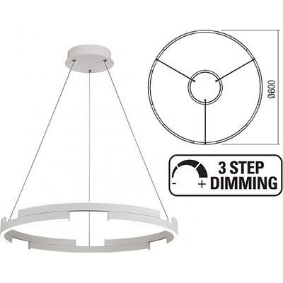 Specifikace: LED 36W, 3-krokové stmívání / 3000K/ 2160lm Celková výška: max 150 cm Průměr: 60 cm Materiál: kov, hliník, PVC difuzor Barva: bílá - písková matná Moderní závěsné LED světlo Smarter Castle od Redo Group s příkonem 36W. Na váběr jsou tři barvy - matná...