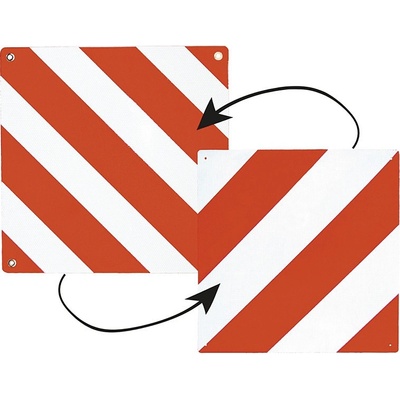 Hliníková reflexní cedule je povinná v Itálii a Španělsku pro označení vozidla v případě, že náklad přesahuje jeho obrys. Využívá se tedy především k označení nosičů kol...