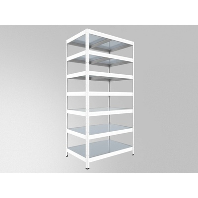 Regál do dílny Biedrax 50 x 75 x 210 cm, pozink, 6 polic bílé lamino 12mm, nosnost 200 kg na polici Regál do dílny s policemi z bílé laminované dřevotřísky (tloušťka 12 mm),...