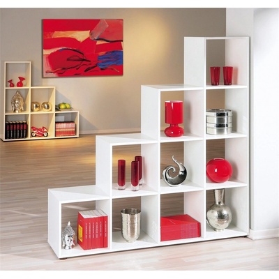 Provedení: Regál je vyroben z lamina v bílém. Regál je rozdělen do 10 úložných prostorů, ve kterých si můžete vystavit různé předměty, hračky, knížky apod. Regál lze umístit ke stěně nebo do prostoru jako dělící stěnu. Regál je vhodný do dětských pokojů, pracoven,...