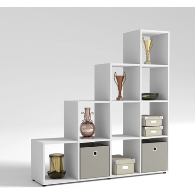 Regál je vyroben z lamina v bílém. Regál je rozdělen do 10 úložných prostorů, ve kterých si můžete vystavit různé předměty, hračky, knížky apod. Regál lze umístit ke stěně nebo...