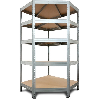 Kompletní kovový regálový systém Corner Pack v zinkové povrchové úpravě se skládá z rohového policového regálu o rozměrech 180x90x45x64,5cm s 5 HDF policemi se zátěží 250 kg...