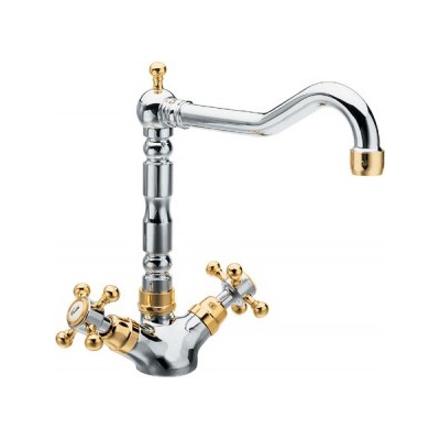 ANTEA stojánková dřezová baterie s retro hubicí, chrom/zlato (3122) Výška 240 mm Hloubka 195 mm Barva Chrom/Zlatá Materiál Mosaz...