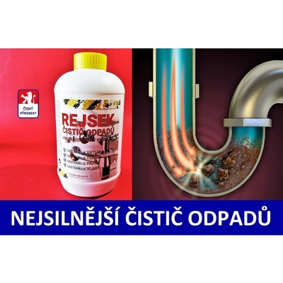 REJSEK-hydroxid sodný(čistič odpadu) 1000g Rejsek na odpad, vysoce účinný prostředek pro čištění a odstranění nežádoucích tuků, vlasů, papíru, zbytků jídla a jiných nečistot z odpadního potrubí. Do výlevky nebo sifonu odpadu umyvadla,vany, WC, kanálku v podlaze se...