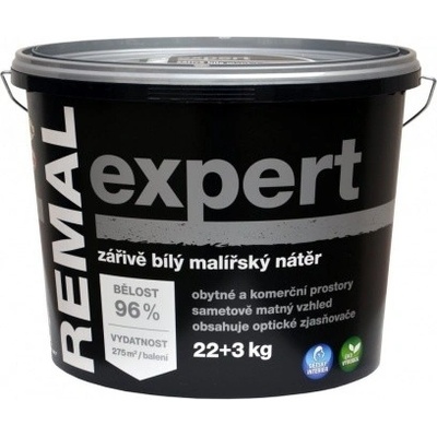 Podrobnosti o produktu 400880-3 22 plus 3 kg REMAL Expert je sametově matná a zářivě bílá malířská barva s extrémně vysokou bělostí 96 procent. Interiérová barva má excelentní krycí schopnost a je zároveň vysoce prodyšná, vhodná i na sanační omítky. Malířská barva...