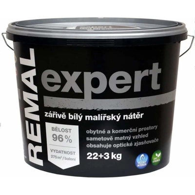 Podrobnosti o produktu 020-610412 22 plus 3 kg REMAL Expert je sametově matná a zářivě bílá malířská barva s extrémně vysokou bělostí 96 procent. Interiérová barva má excelentní krycí schopnost a je zároveň vysoce prodyšná, vhodná i na sanační omítky. Interiérová barva...