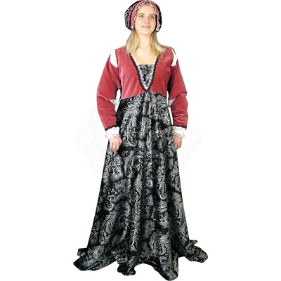 Renesanční měšťanské šaty Marjorie, 16. stol. Materiál: taft (100% Polyester), krajka (95% bavlna, 5% nylon), samet (100% bavlna). Vzor taftu se může lišit dle dostupnosti Tyto...