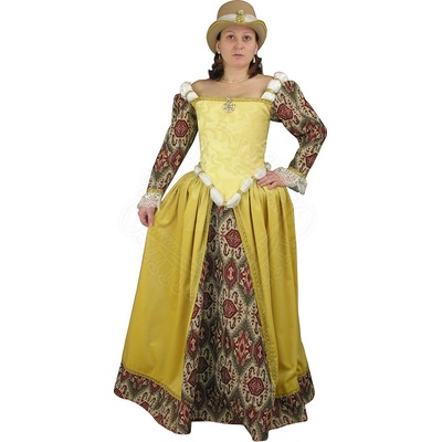 Italské renesanční šaty části kostýmu: šaty, čepec materiál: dekorativní brokát (lehká avšak pevná hustě tkaná látka, odolná vůči zátrhům a prodření, složení 70% PES, 30%...