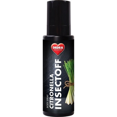 DEDRA - CITRONELLA INSECTOFF, BODY SPRAY proti klíšťatům a hmyzu, 100 ml Tělový sprej, který klíšťatům a hmyzu nevoní, s přírodními silicemi. Umožní bezpečný a příjemný pohyb...