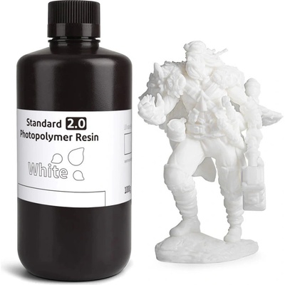 Fotopolymerní UV pryskyřice na 3D tisk kompatibilní s většinou LCD/DLP tiskáren na trhu, vlnová délka 405 nm, hmotnost 1 kg, barva bílá.