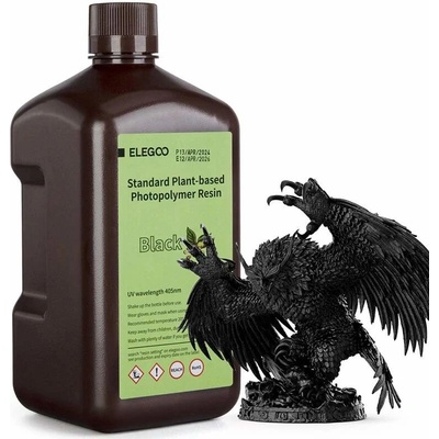 Fotopolymerní UV pryskyřice na 3D tisk kompatibilní s většinou LCD/DLP tiskáren na trhu, vlnová délka 405 nm, hmotnost 1 kg, barva černá.
