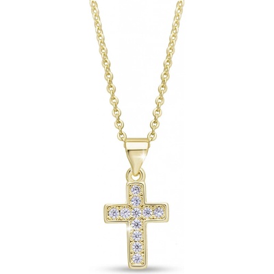 Pozlacený řetízek 14k zlatem s křížkem a zirkony . Tento výrobek neobsahuje těžké kovy. Délka řetízku: 45 cm ( 40cm + 5 cm prodloužení) Šířka řetízku : 0,1 cm Rozměr křížku:...