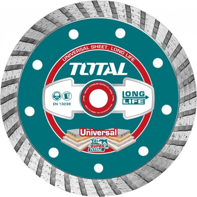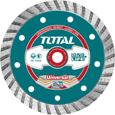 Kotouč diamantový řezný, Turbo, suché i mokré řezání 125mm (TAC2131253) Diamantový řezný kotouč značky TOTAL je ideálním nástrojem pro efektivní řezání v suchých i mokrých...