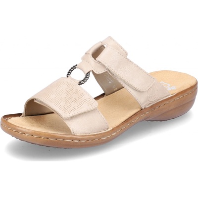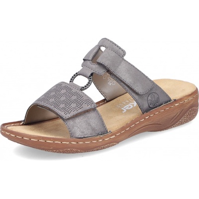Dámské pantofle značky Rieker s metalovým vzorem. Díky gumičkám perfektně sednou k noze. Jsou pohodlné díky vyměkčené stélce. Podešev:Podešev obuvi je s jemným protiskluzovým...