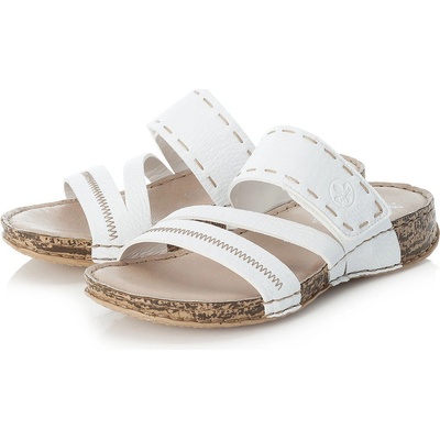 RIEKER 60888-80 white, dámské pantofle Oblíbený vzor dámských vycházkových pantoflí Rieker v bílé barvě. Svršek a podšívka je vyroben ze syntetické kůže. Přední pásky jsou...