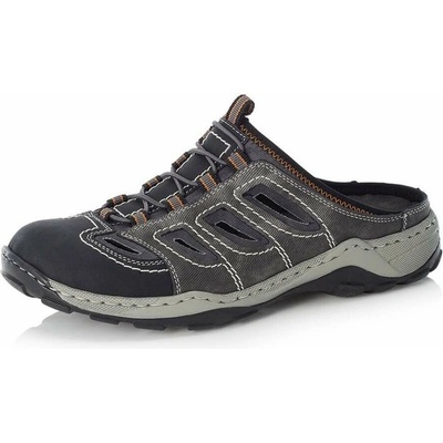 RIEKER 08096-40 grey combi, pánské sandály Pánské vycházkové pantofle s uzavřenou špičkou v šedé barvě. Svršek je vyroben ze syntetické kůže s prořezy, prošívané světlě šedou...