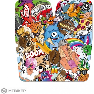 Blatník Riesel Schmutz:fink Stickerbomb Jednoduchý a funkční blatníček pod sedlo v designu legendární bajkové značky Rie:sel Design. Blatník je určený pro dětská kola. Upevní...