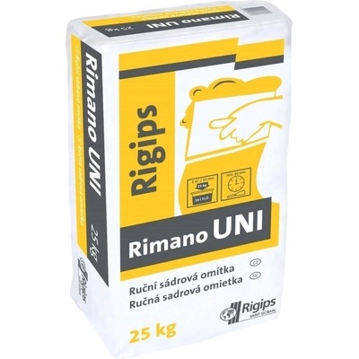 Rimano UNI je hlazená sádrová omítka vhodná pro povrchovou úpravu stěn a stropů v interiéru, včetně domácích kuchyní a koupelen. Je zvláště vhodná pro renovace a při výměně oken (úprava ostění a nadpraží). Sádrová omítka je určena pro ruční nanášení. Spotřeba cca 0,8...
