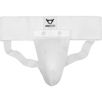 RINGHORNS Suspenzor CHARGER v bílé barvě. Suspenzor je vhodný pro trénink různých bojových sportů. Popruh se skládá z odolné a pohodlné tkaniny, která usnadňuje odvod potu. Ergonomický, ochranný suspenzor je vyroben z odolného plastu a je odnímatelný pro čištění.