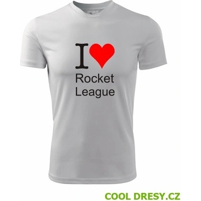 Bílé dámské tričko I love Rocket League. nabízené velikosti jsou S,M,L,XL,XXL. Výběr z 12ti barev. Tričko patří do kategorií Trička I love závodní hry - dámská, Dárek pro hráčky...