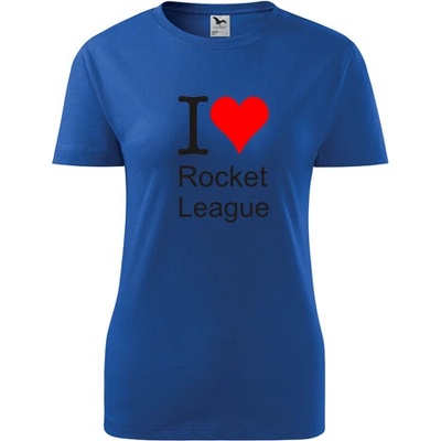 Modré dámské tričko I love Rocket League. nabízené velikosti jsou S,M,L,XL,XXL. Výběr z 12ti barev. Tričko patří do kategorií Trička I love závodní hry - dámská, Dárek pro...