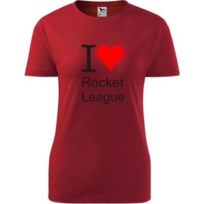 Červené dámské tričko I love Rocket League. nabízené velikosti jsou S,M,L,XL,XXL. Tričko je zařazeno v sekcích Trička I love závodní hry - dámská, Dárky pro hráčky počítačových...