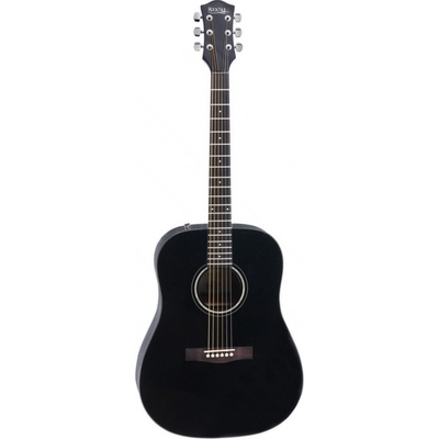 akustická kytara, typ dreadnought, smrková resonanční deska, luby a zadní deska: mahagon, hmatník palisandr, nultý pražec 43 mm, menzura 648 mm, struny D´Addario, chromované mechaniky, vysoký lesk, barva černá