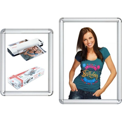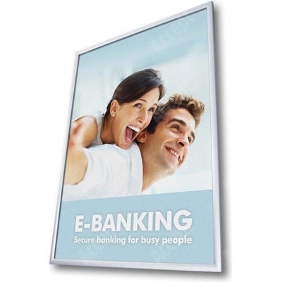 ideální pro všechny velikosti plakátů, kulaté rohy, profil 25 mm, velmi jednoduchá výměna plakátu, díky rámu, který funguje jako klip