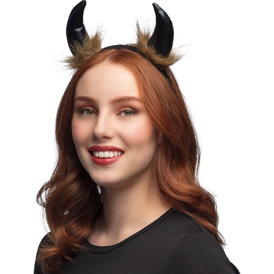 Čertovské rohy na čelence, černé s chlupy. Materiál: 80% polyester , 20% tvrzený polystyrén