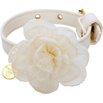 Elegantní obojek pro psy vyrobený z kvalitní umělé měkké kůže v barvě slonové kosti či černé zdobený vícevrstvou květinou z organzy. Obojek je příjemný na dotek a zároveň pevný,...