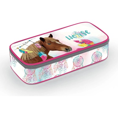 Rozměry: cca 21,5 x 10 x 5,5 cm Školní pouzdro etue s motivem koně. Pouzdro je opatřeno pevnými zipy, kapsičkou na zip a klopou s pevnými poutky po obou stranách. Pod klopou je...
