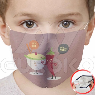 Dizajnérské rouška ’’HOT-SWEET’’ pro děti ze 100% polyesterového vlákna s kapsou do které se vkládá filter s aktivním uhlím. Objednejte přímo od výrobce!