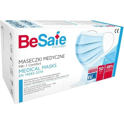 Ústní rouška/ústenka, třívrstvá. S více než 99% výkonem filtru (BFE 99), opatřená nosním drátkem a měkkými gumičkami. Balení obsahuje 50 ks.